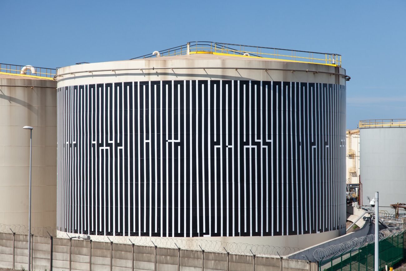 À l’occasion de la triennale Art & Industrie – GIGANTISME, Rubis Mécénat s’est associé au Frac Grand Large – Hauts-de-France pour commander à l’artiste française Tania Mouraud trois œuvres inédites destinées à investir le site de Rubis Terminal dans le Port de Dunkerque, et une façade au cœur de la ville. Les textes de très grand format de Tania Mouraud ont été conçus pour l’échelle de l’espace public. Ici, l’artiste a envisagé une intervention mémorielle et poétique s’inscrivant dans l’histoire de Dunkerque.